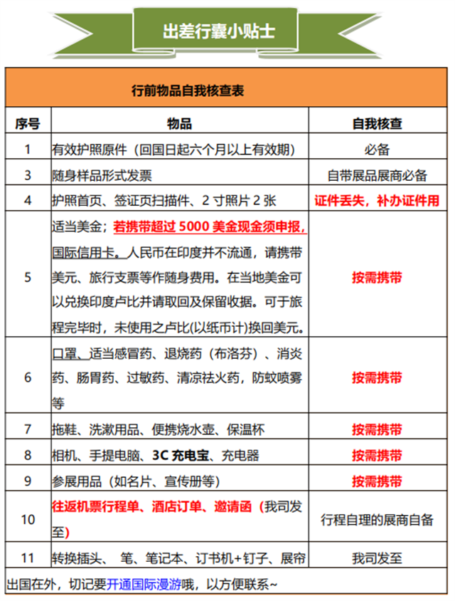 5、若自行攜帶樣品,請務必用行李箱裝運或折疊小推車,方便托運、過關, 以及機場、展館的進出,并攜帶形式發(fā)票。
